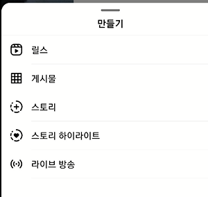 (2) 만들기 리스트에서 '스토리' 선택하기