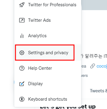 2. 트위터 계정 설정으로 가기