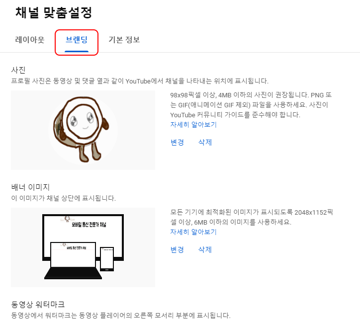 1. 유튜브 스튜디오 브랜드 설정으로 가기