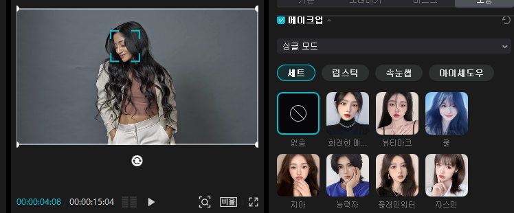 (2) 메이크업 기능을 켜고 원하는 메이크업 스타일을 선택하면 됩니다.