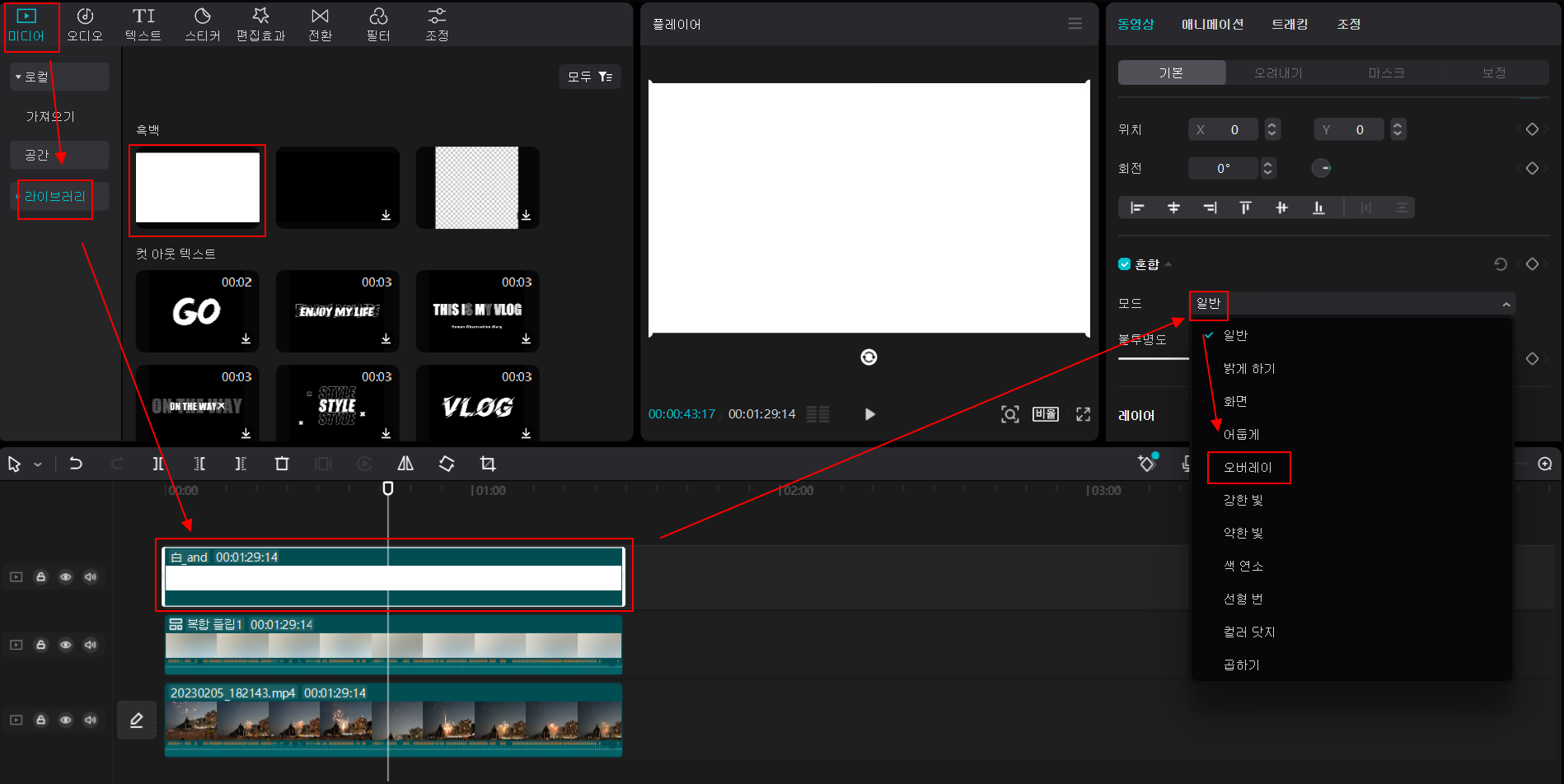 6. 여러 동영상 혼합모드에서 '오버레이' 기능 사용하기