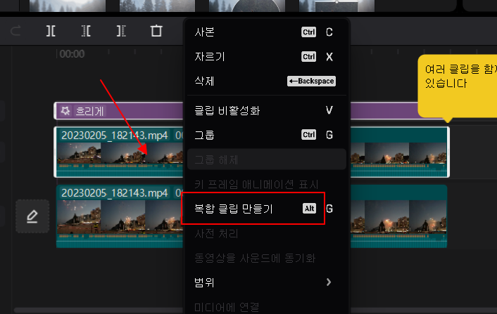 (4) 리스트에서 '복합 클립 만들기' 선택하