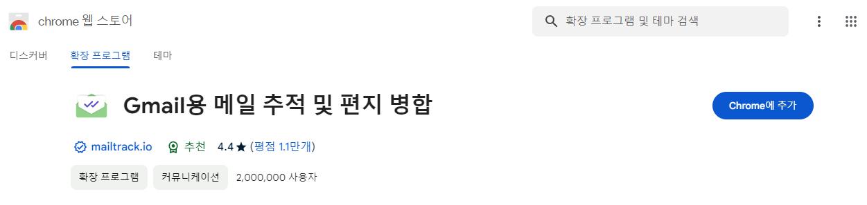 7. 'Gmail용 메일 추적 및 편지 병합' 크롬 확장 프로그램 바로가기
