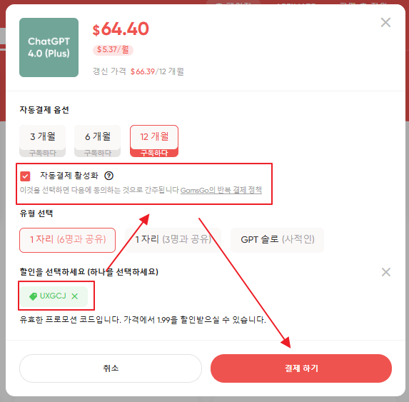 (4) 자동결제 활성화: 자동결제를 활성화하면 추가 할인을 받을 수 있습니다.