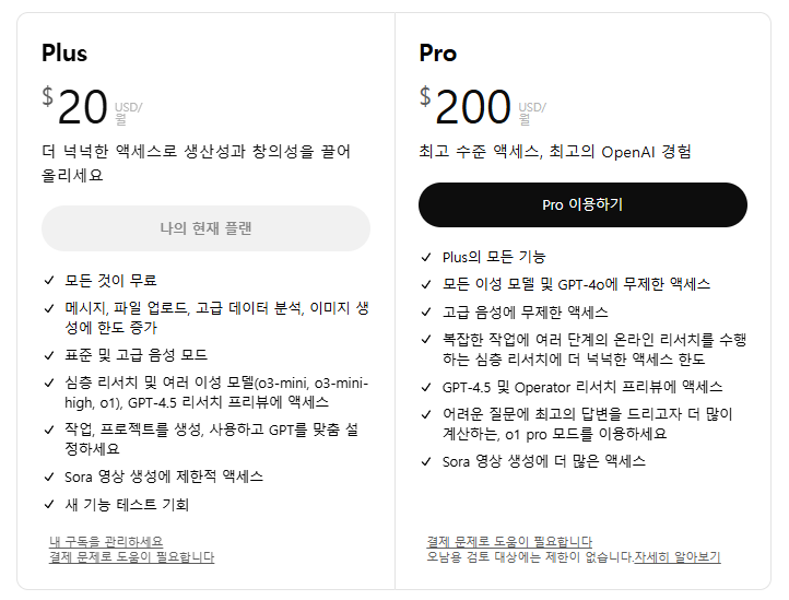 Open AI의 ChatGPT Plus 구독 가격은 USD 20$로 비싸지는 않습니다.