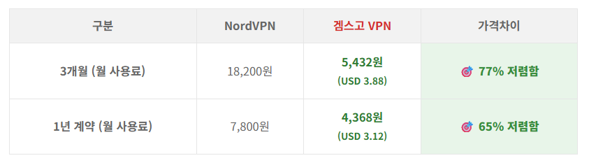 ※ NordVPN은 겜스고에서 구독하는 게 맞음. 서비스 차이가 전혀 없음