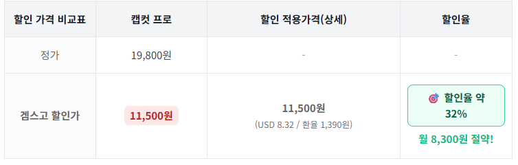 ※ Capcut Pro는 겜스고에서 구독하는 게 맞음. 단독 계정 / 서비스 차이가 전혀 없음