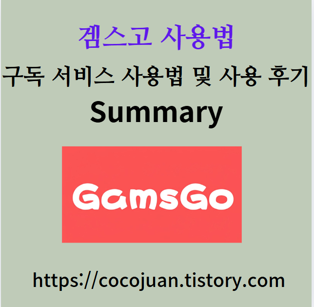 GAMSGO 구독 서비스 사용법 및 사용후기 정리 Summary