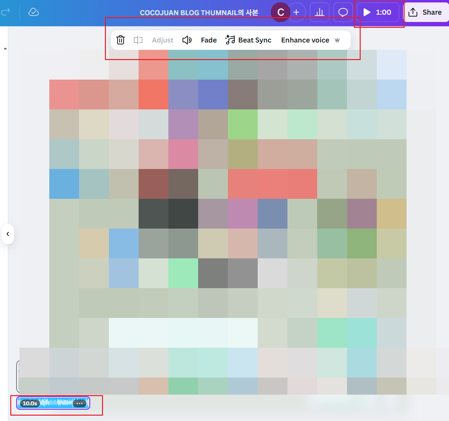 (2) 추가 된 음악을 누르면, 음악 편집 도구가 활성화 됩니다.