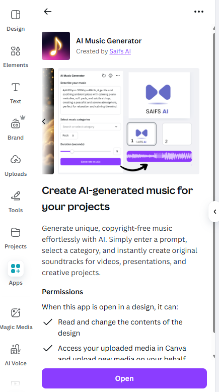 캔바에서 AI 음악 생성기 앱을 사용해 배경음악 작곡하기