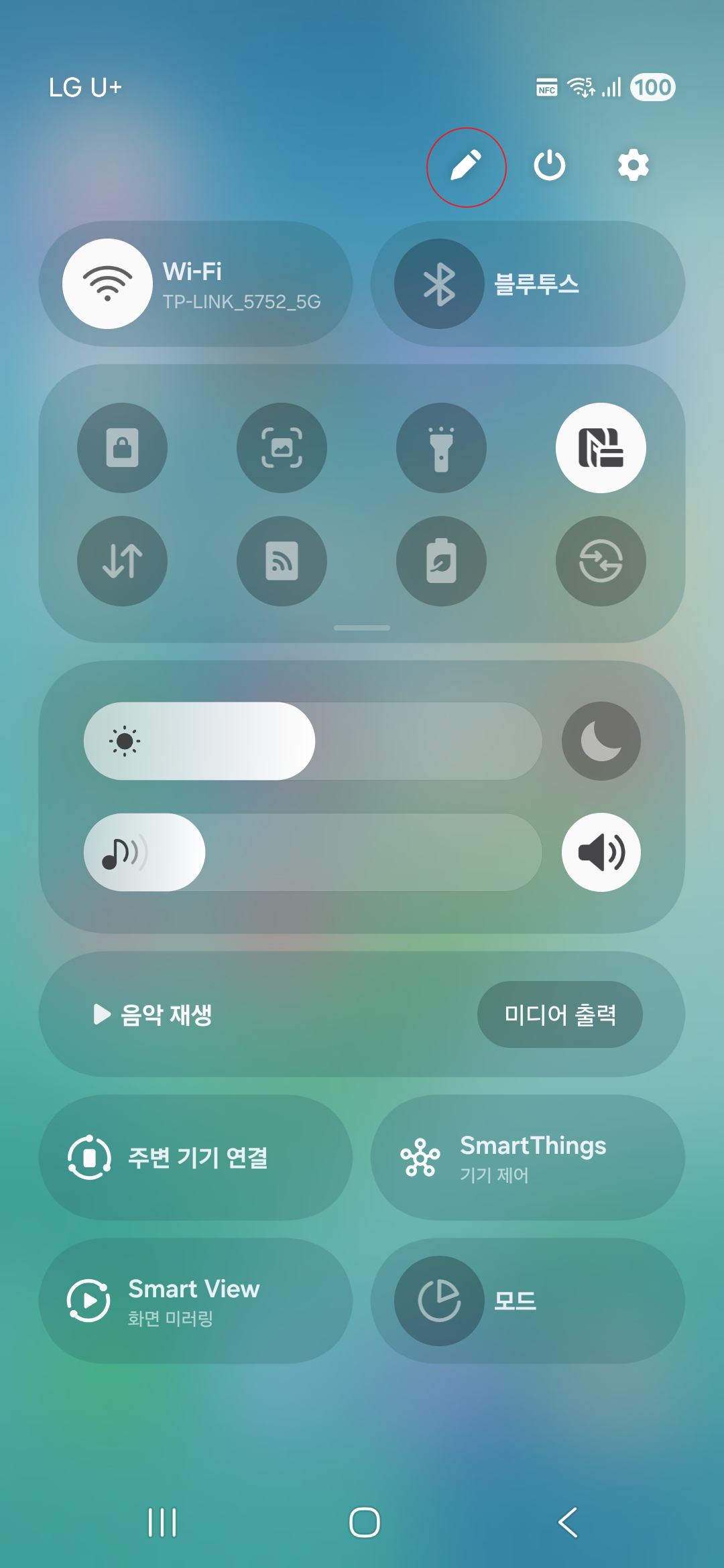 스마트폰 상단 오른쪽 상단에서 아래로 스와이프해 빠른 설정창을 엽니다.