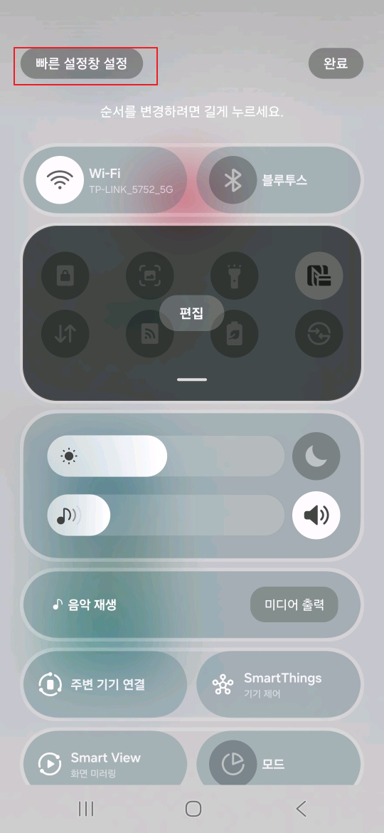 (3) ‘빠른 설정창 설정’ 메뉴 선택