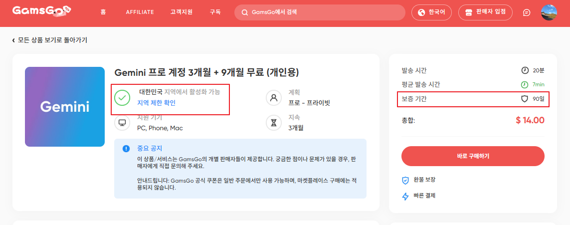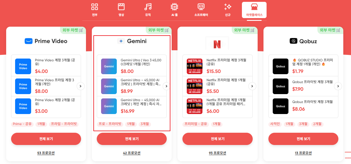 제미나이 프로 할인 받는 방법: 겜스고 마켓플레이스 가격 비교 사이트
