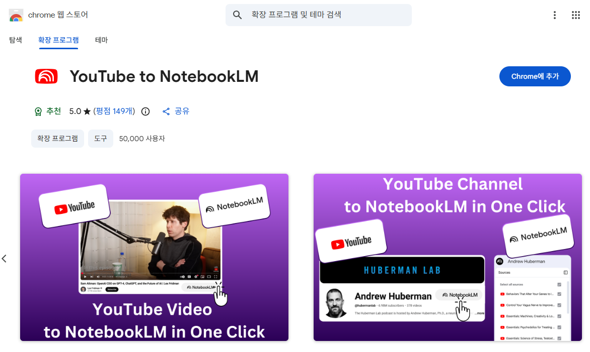 유튜브 링크 클릭 1번으로 노트북LM으로 보내는 크롬 확장프로그램
