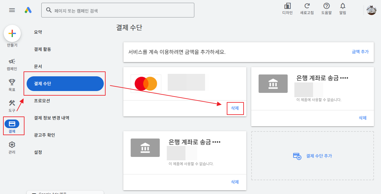 Google Ads 결제 수단 카드 제거하기