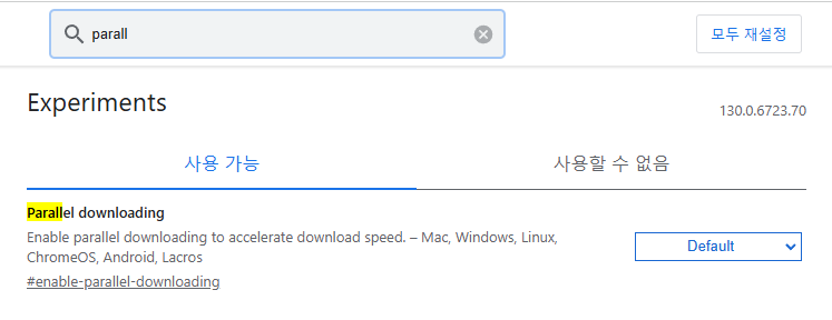 • [Flags] 인터넷 다운로드 속도 증가: 검색 'Paralled downloading' 동시에 다운로드 가능하게 해줌, enable로 바꾸기