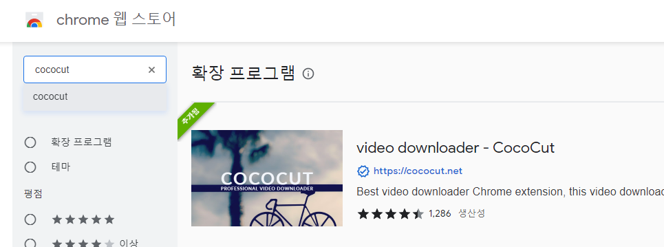 (2) 'video downloader - CocoCut' 크롬에 설치합니다.