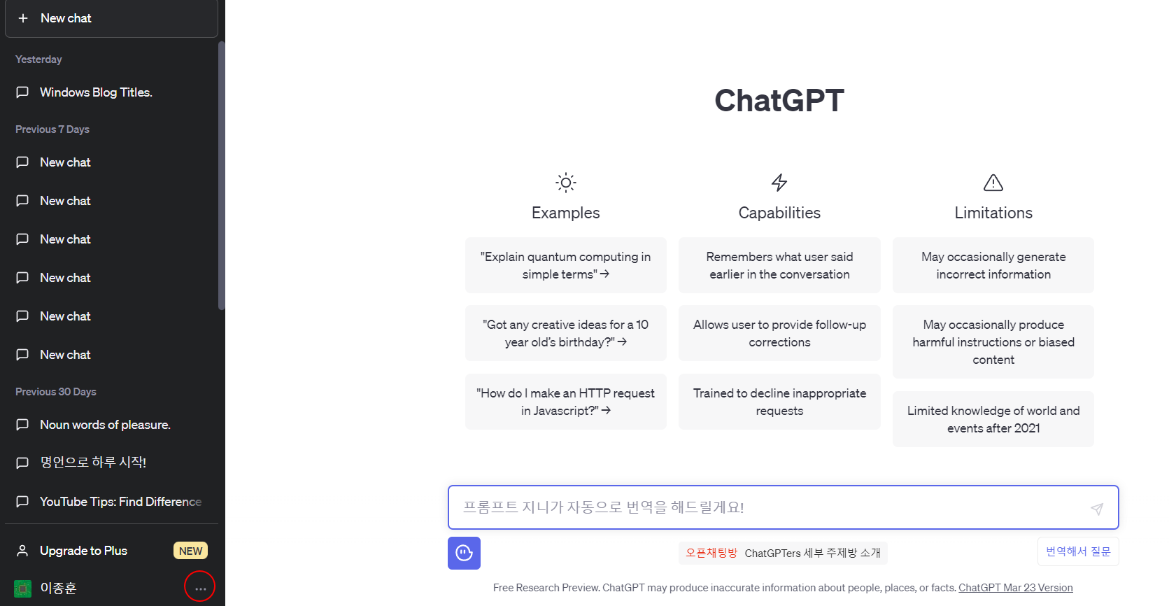 1. ChatGPT 대화창의 모든 기록 삭제하기